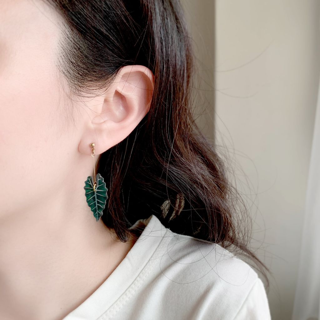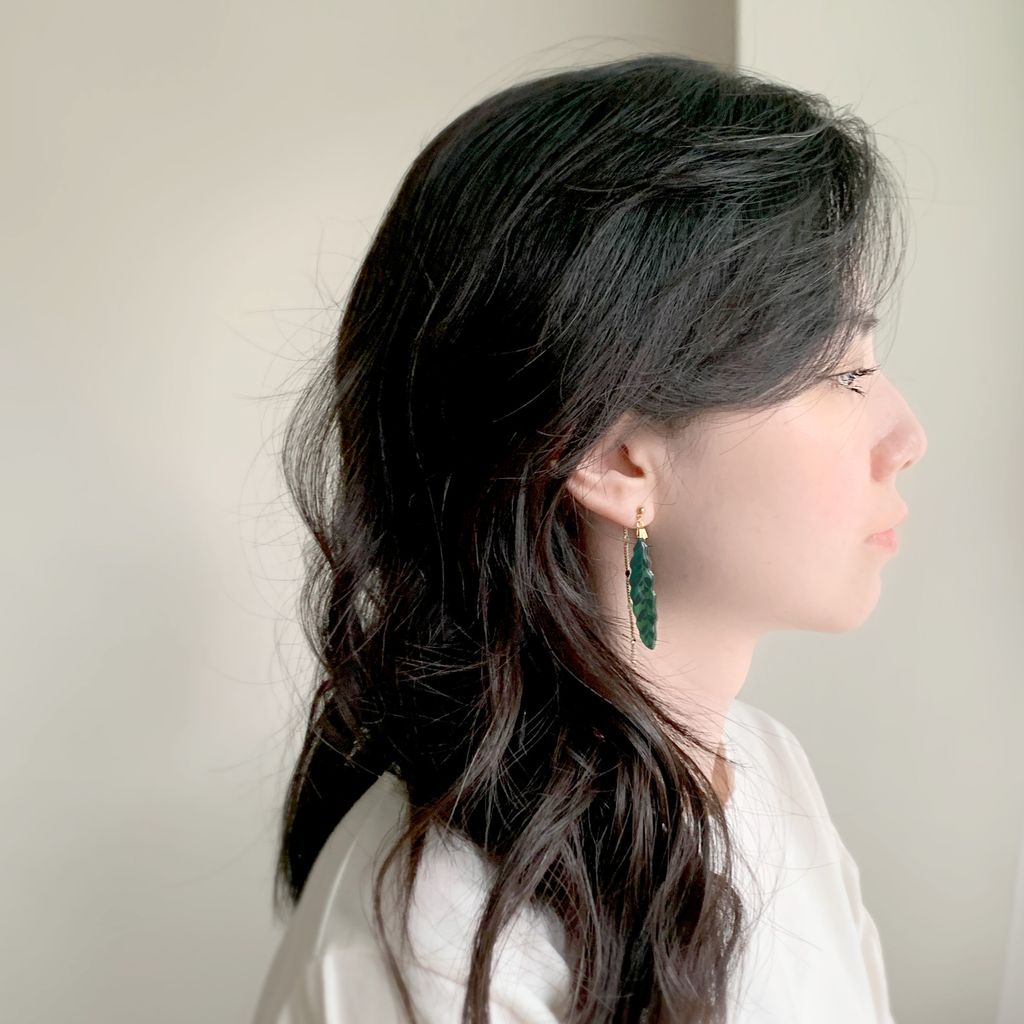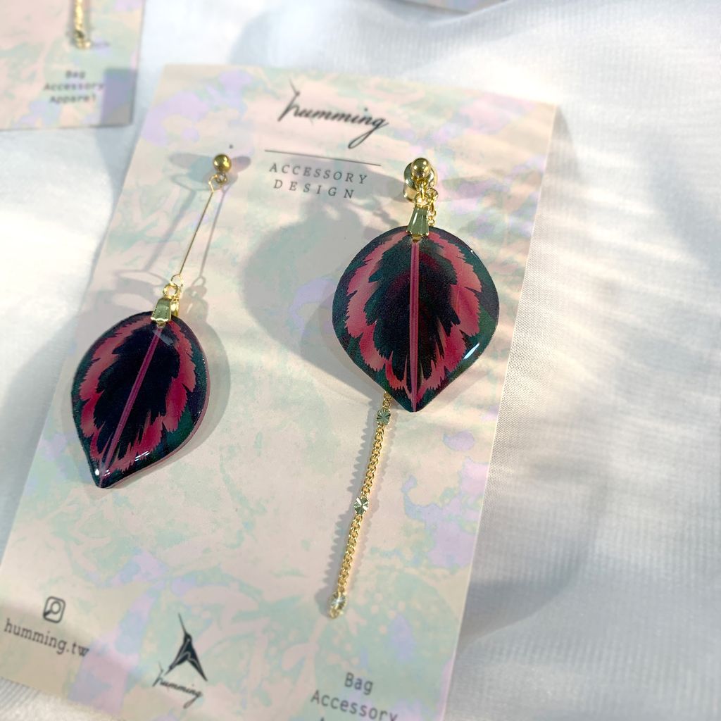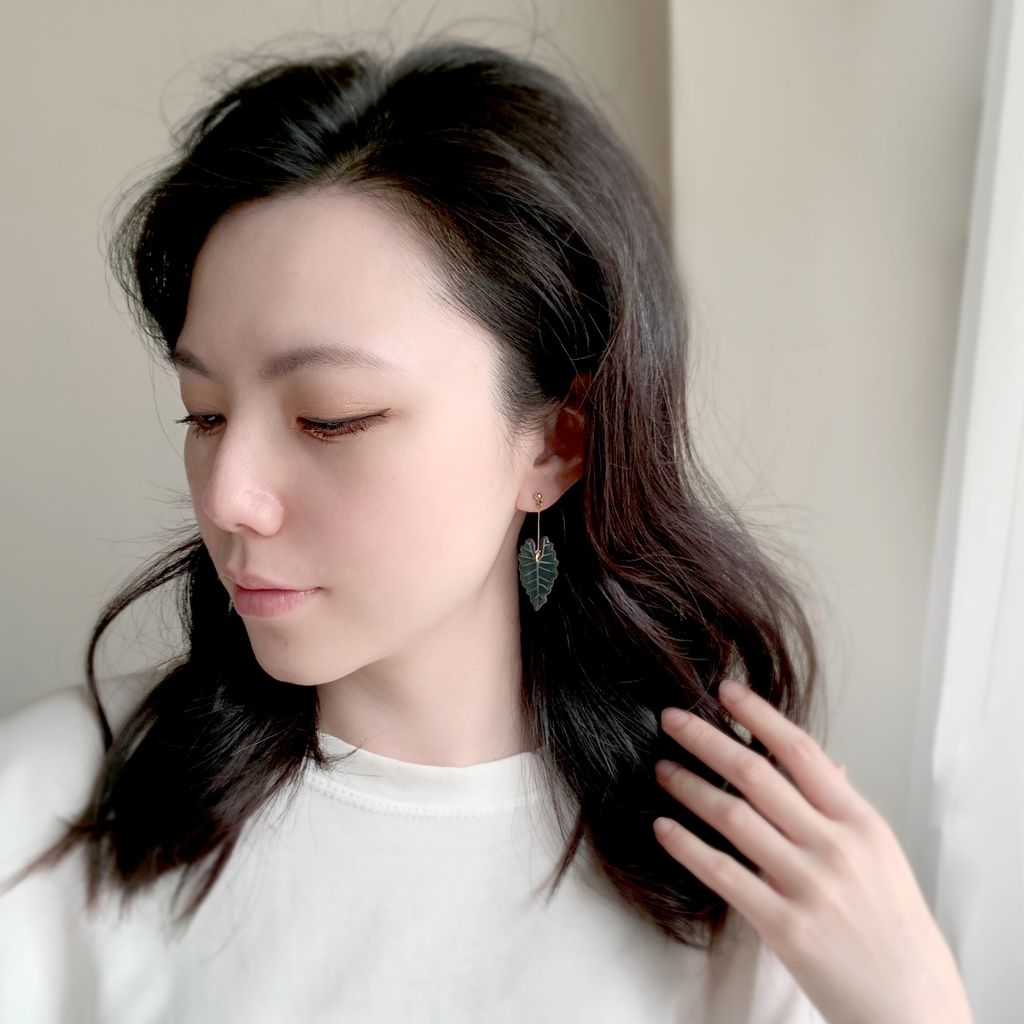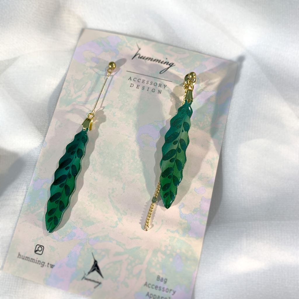 亮麗清新感的不對稱耳環,觀葉植物款式是很好的派對搭配點綴~