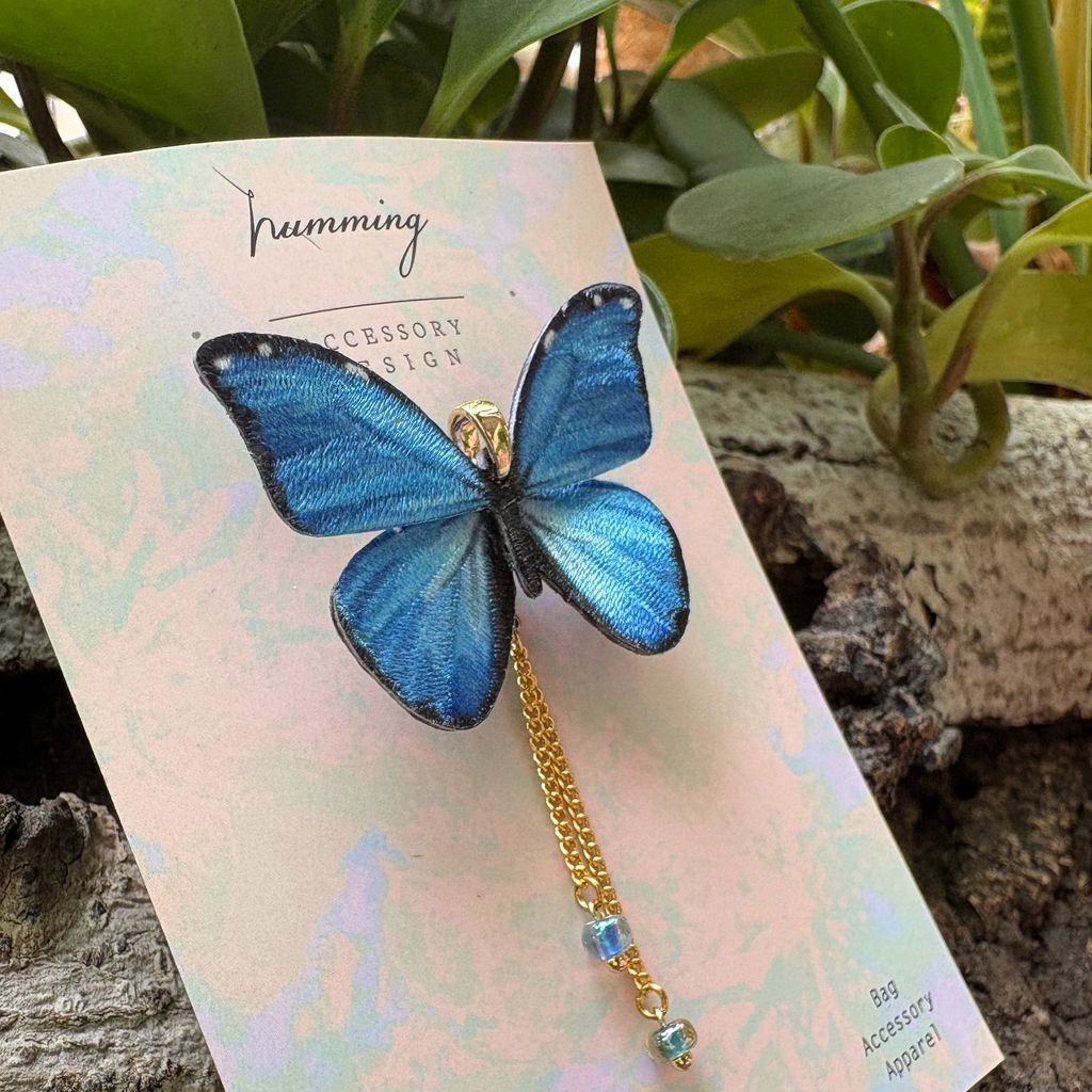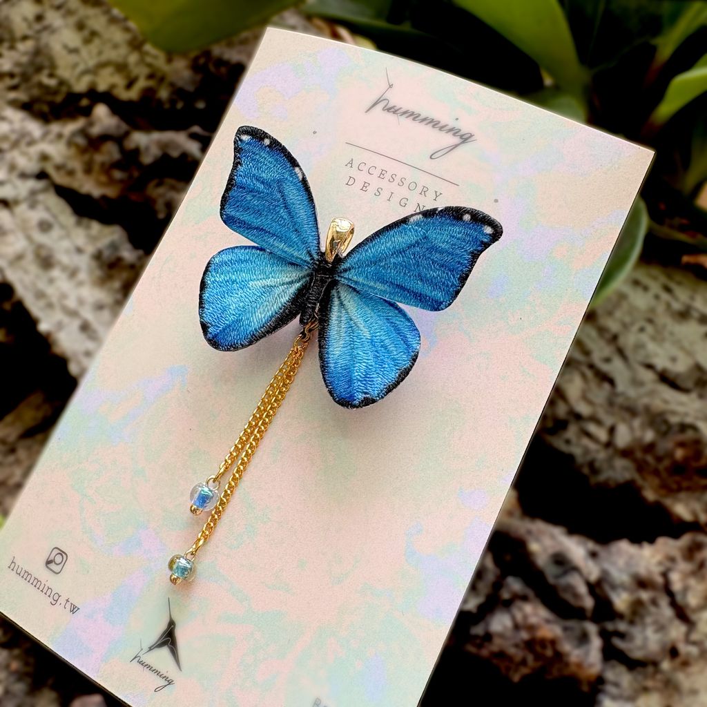 胸針 | 大藍閃蝶 | Morpho menelaus| 刺繡|別針