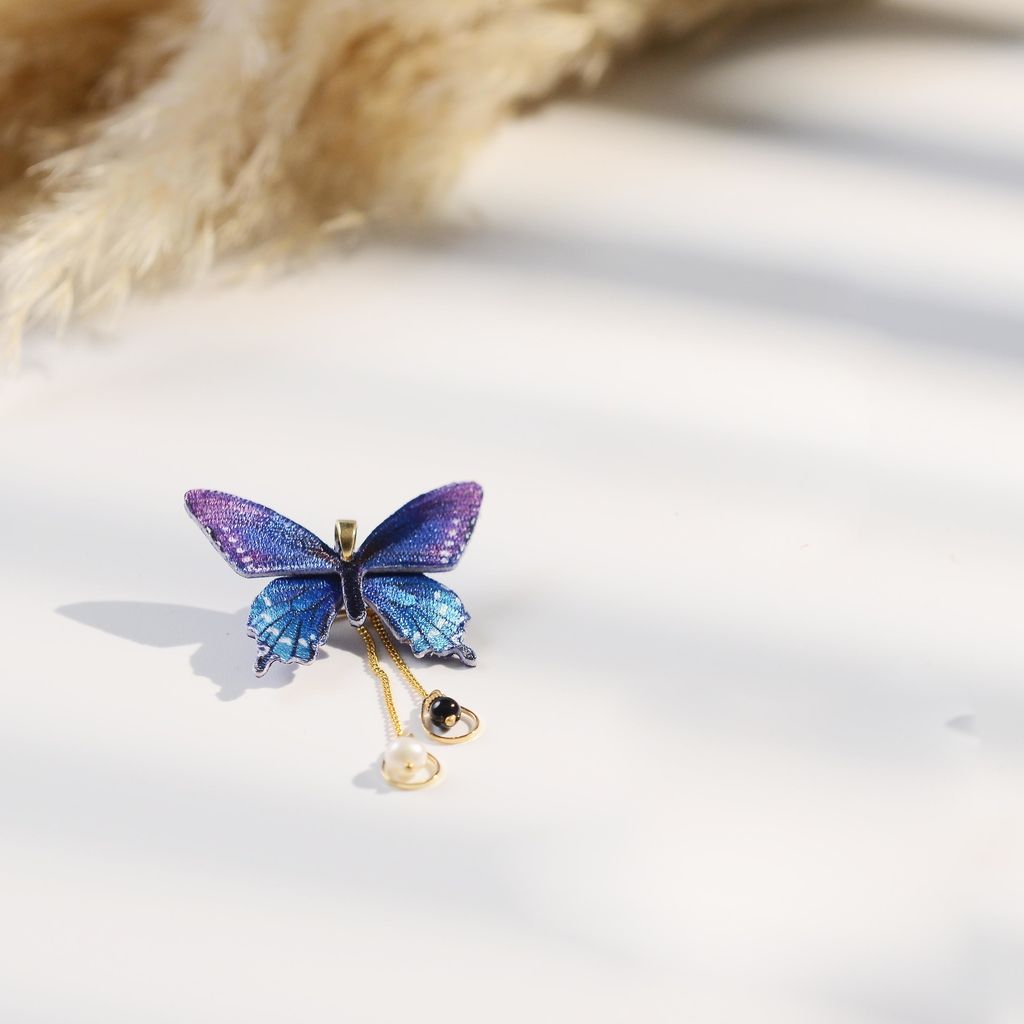 胸針- 美洲藍鳳蝶 | Battus Philenor | 刺繡 | 別針