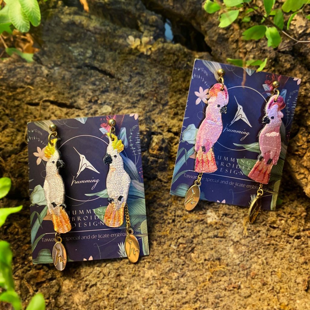 刺繡耳環 | 葵花鳳頭鸚鵡| Galah / Sulpher-crested Cockatoo | Humming