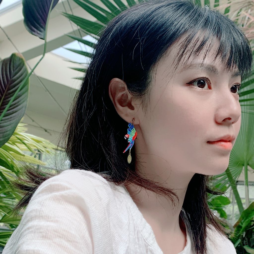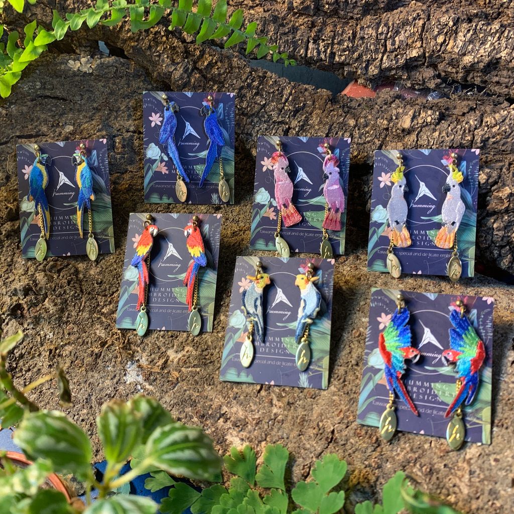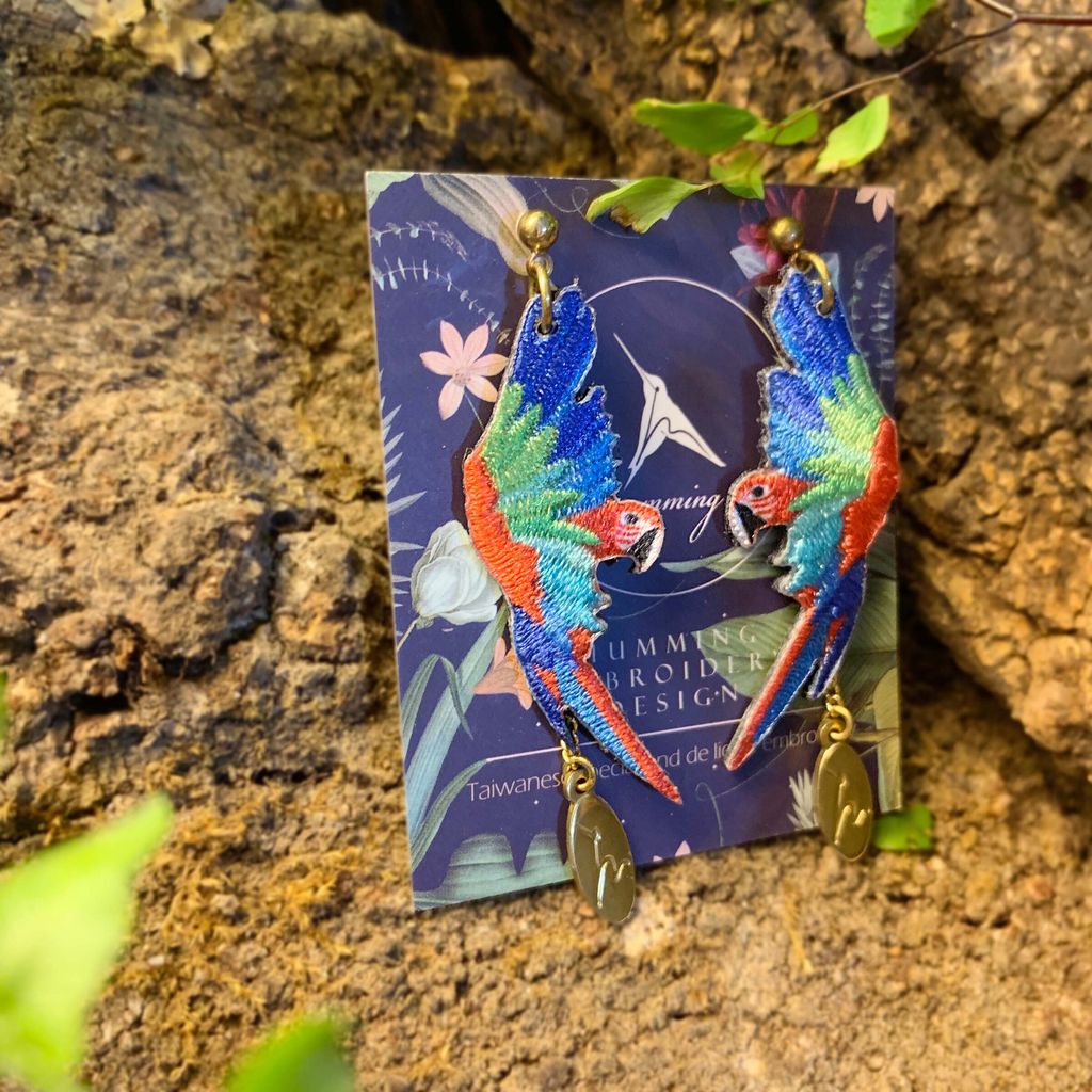 刺繡耳環 | 綠翅金剛鸚鵡| Red and Green Macaw | 耳夾 | 鳥類系列