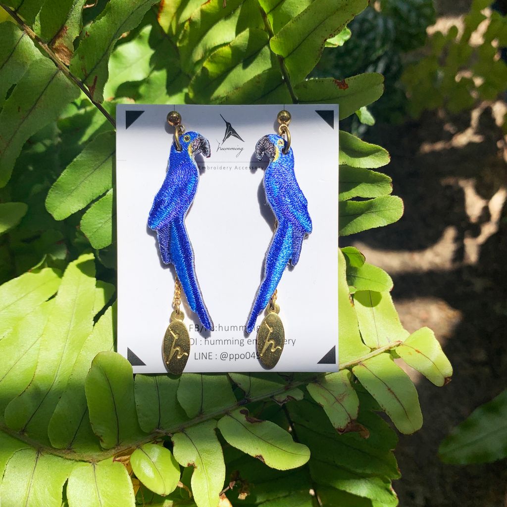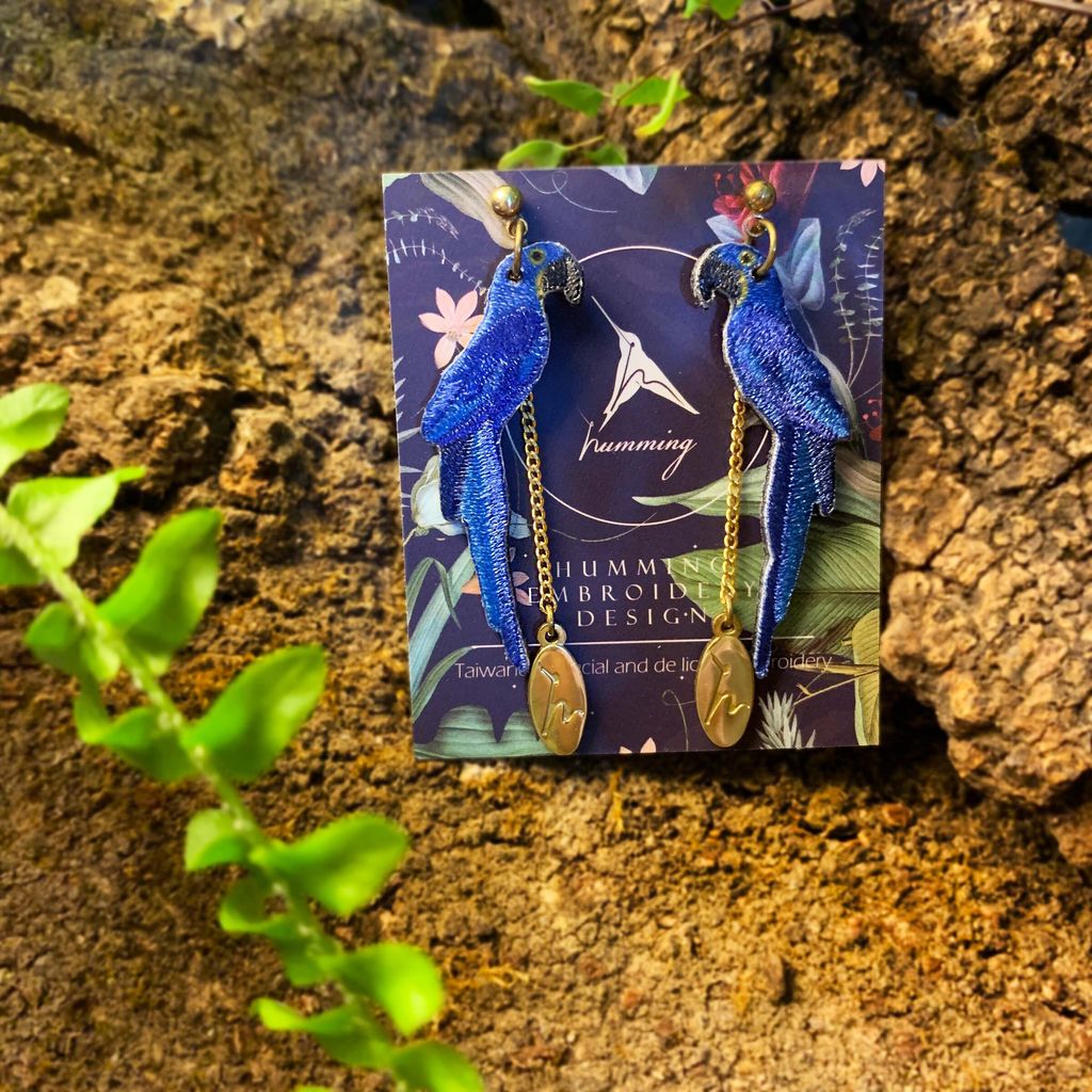 刺繡耳環|藍紫金剛鸚鵡 | Hyacinth Macaw | 耳針 |耳夾