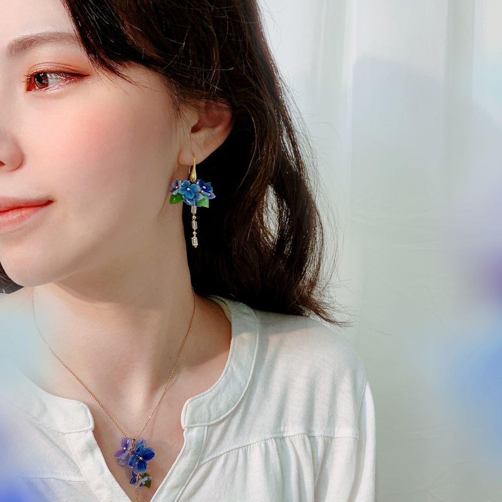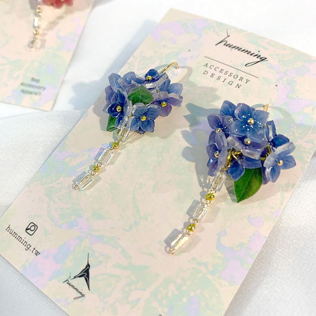 樹脂耳環 | 紫陽花 | 繡球花 | 耳勾 | 包14K金 | 禮物| 禮盒