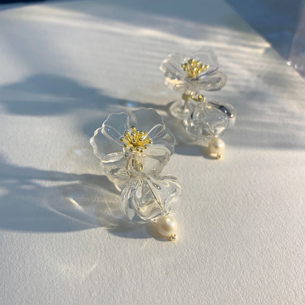樹脂耳環 | 冰晶系列|罌粟花 | 水鑽 | 耳針 | 琉璃 | 禮物| 禮盒 聖誕節限定 Poppy