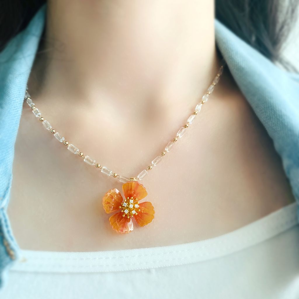 樹酯項鍊 | 加州罌粟花 | 水鑽 | 客制 | 琉璃 | 禮物| 禮盒 poppy
